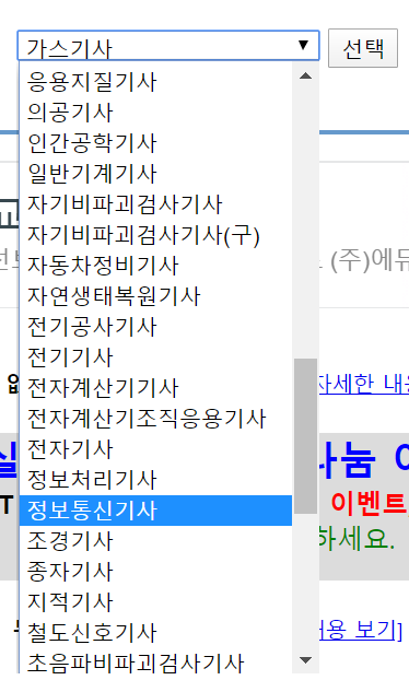 저는 정보통신기사를 선택하기위해 첫번째로 "기사"를 누릅니다.