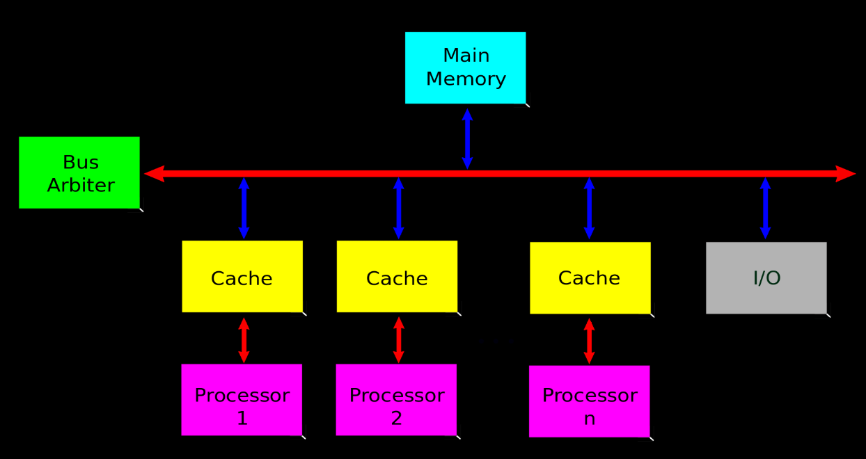 운영체제와 메모리를 공유하는 여러 프로세서가 프로그램을 수행하고 하나의 운영체제가 모든 프로세서를 관리하며 , 메모리와 입출력 버스 및 데이터 경로를 공유한다. MPP(HPC)에 비해 병렬프로그래밍이 쉽고 작업 분산이 용이하지만 확장성은 취약하다.