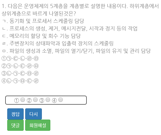 문제 : 운영체제 5계층을 하위계층에서 상위계층으로 바르게 나열된것은?