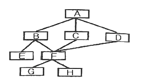 8. 다음은 어떤 프로그램 구조를 나타낸다. 모듈 F에서의 fan-in과 fan-out의 수는 얼마인가?