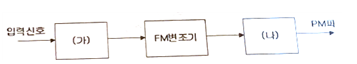 아래 그림과 같이 FM 변조기를 이용하여 PM 변조를 하고자 한다. 괄호에 들어갈 내용으로 적합한 것을 고르시오.