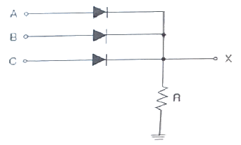 다음 회로에서 A, B, C를 입력, X를 출력이라고 하면 회로는 어떤 논리 게이트인가? (단, 정논리 회로이다.)
