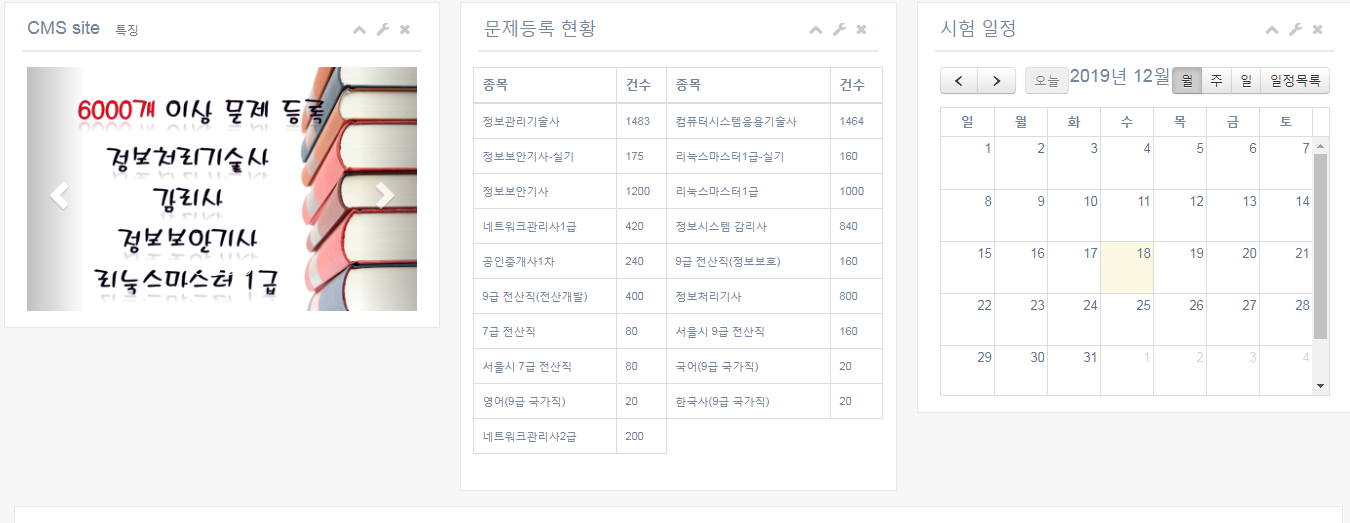 왼쪽바에서 "기출문제"를 클릭하시면 풀수있는 기출문제 목록이 나와요. 여기서 정보보안기사 클릭!