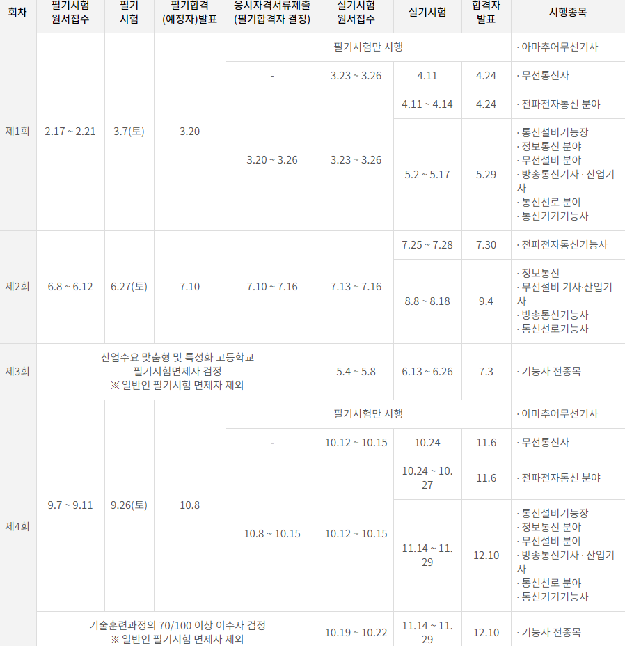 2회차 : 6월 27일 필기시험 . 8월 8일 실기시험 (무선설비.정보통신분야 한정)