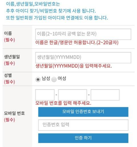 여기서 이름.생년월일.성별.전화번호등 필수사항만 적고 넘어갈게요 ㅎㅎ